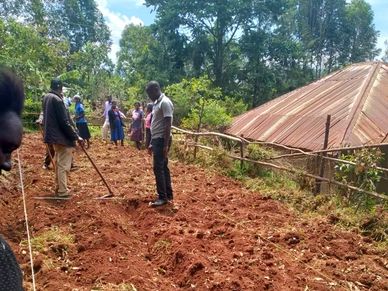Kegati is GHC's 5th Village in Kisii County. This village is 7.4 Km and roughly a 15 minute drive from Kisii town. Our baseline surveys of the community covered 56 households. The surveys consisted of health questions, such as nutrition intake, housing and compound situations, water source conditions, and hand washing, along with economic and social questions. Most households did not have kitchen gardens and therefore bought their vegetables from the market. Because of the large number of family members of many of the households, this practice considerably raised their daily expenses. A decent number of households in Kegati live in mud walled houses, with grass thatched roofs and rusty old iron sheets, which leak when it rains. The houses tend to be poorly smeared and they have no places in their kitchens to place their utensils.